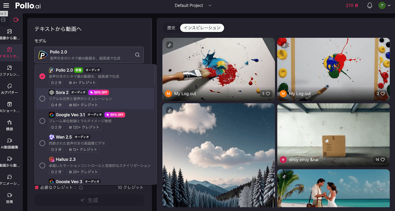 また「テキストから動画」「画像から動画」「動画から動画」などわかりやすくタグ分けされており、直感的に使用できるからです。