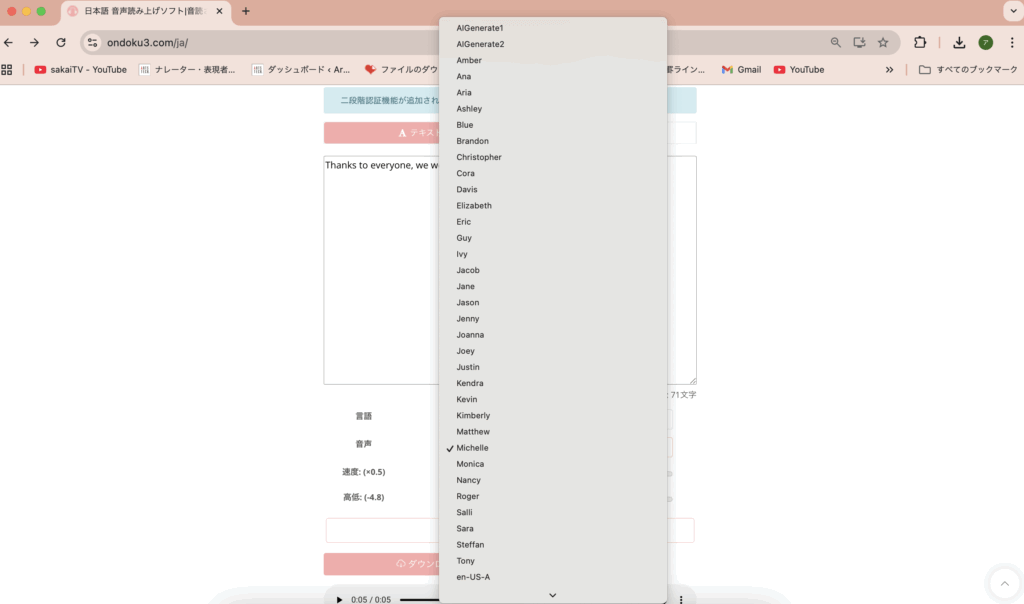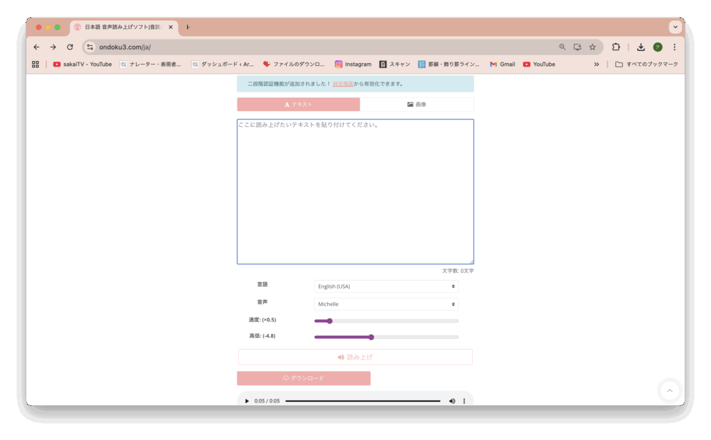 読み上げボタンを押せば、自動的にナレーションが生成されます。