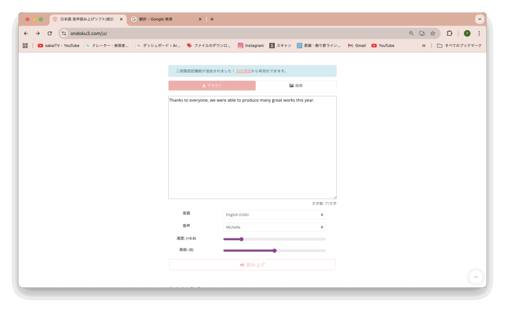 ブラウザで即使える日本語音声読み上げサービス(無料・商用利用OK)。