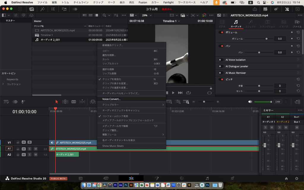 ということで今回は、DaVinci Resolve 20 のバージョンアップにおいて、プロの現場で実際に使えそうな新機能を探求してみました。